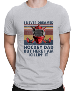 Men’s Vintage T Shirts I Never Dreamed I’d Be A Sexy Hockey Dad But Here I Am Killin It Crew Neck Short Sleeve Gifts