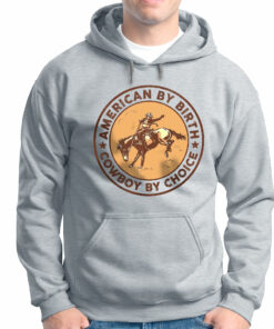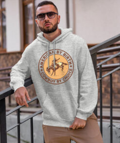 Men’s Vintage Hoodie – American By Birth Cowboy By Choice Gifts – Fleece Pullover Hoodie